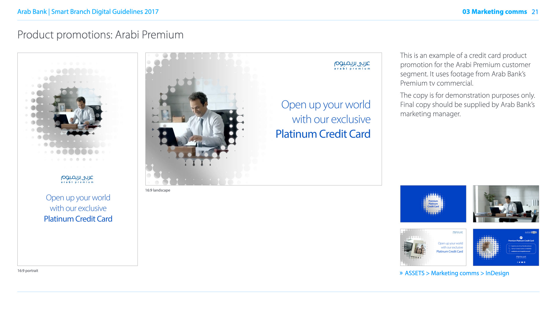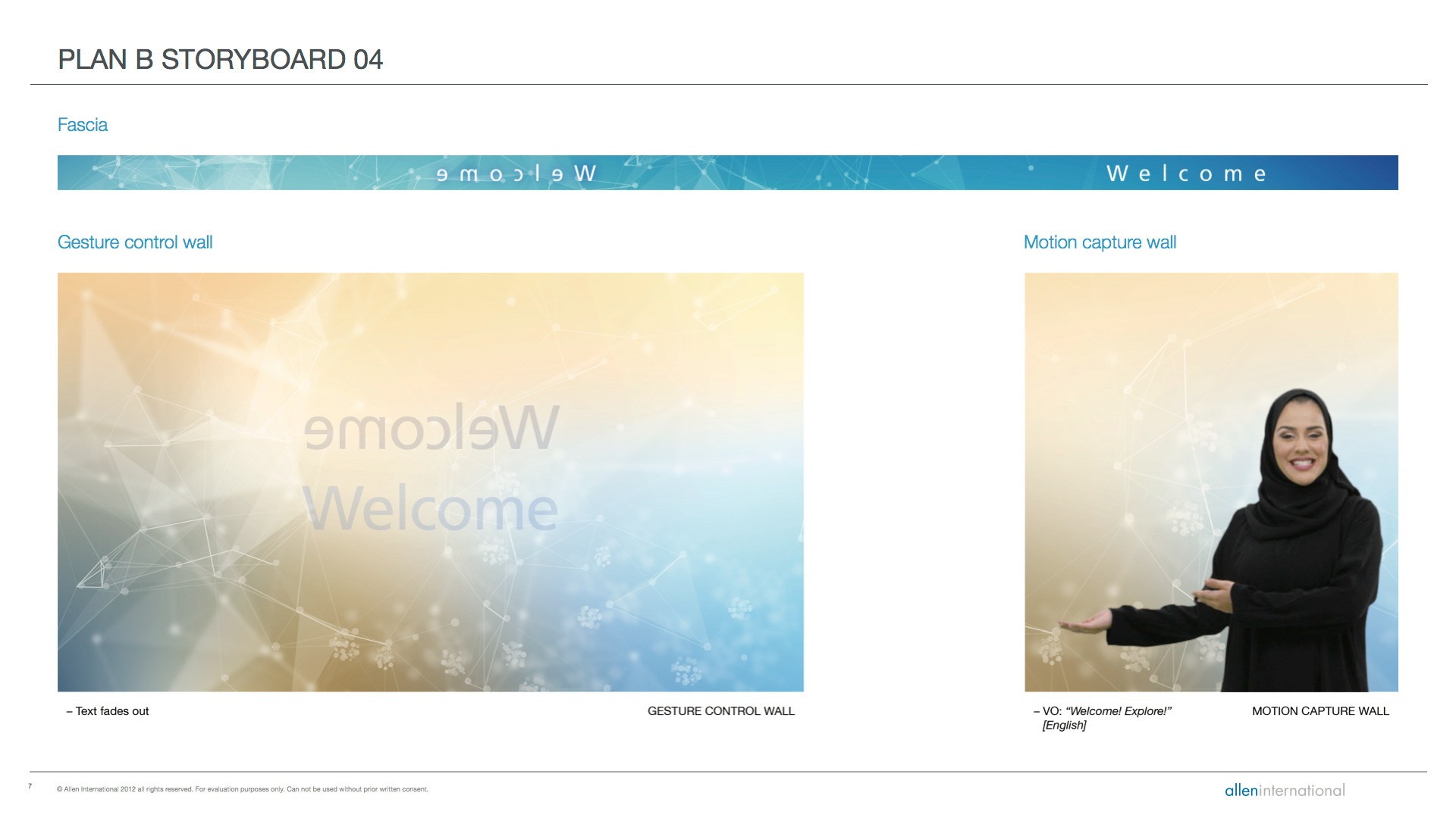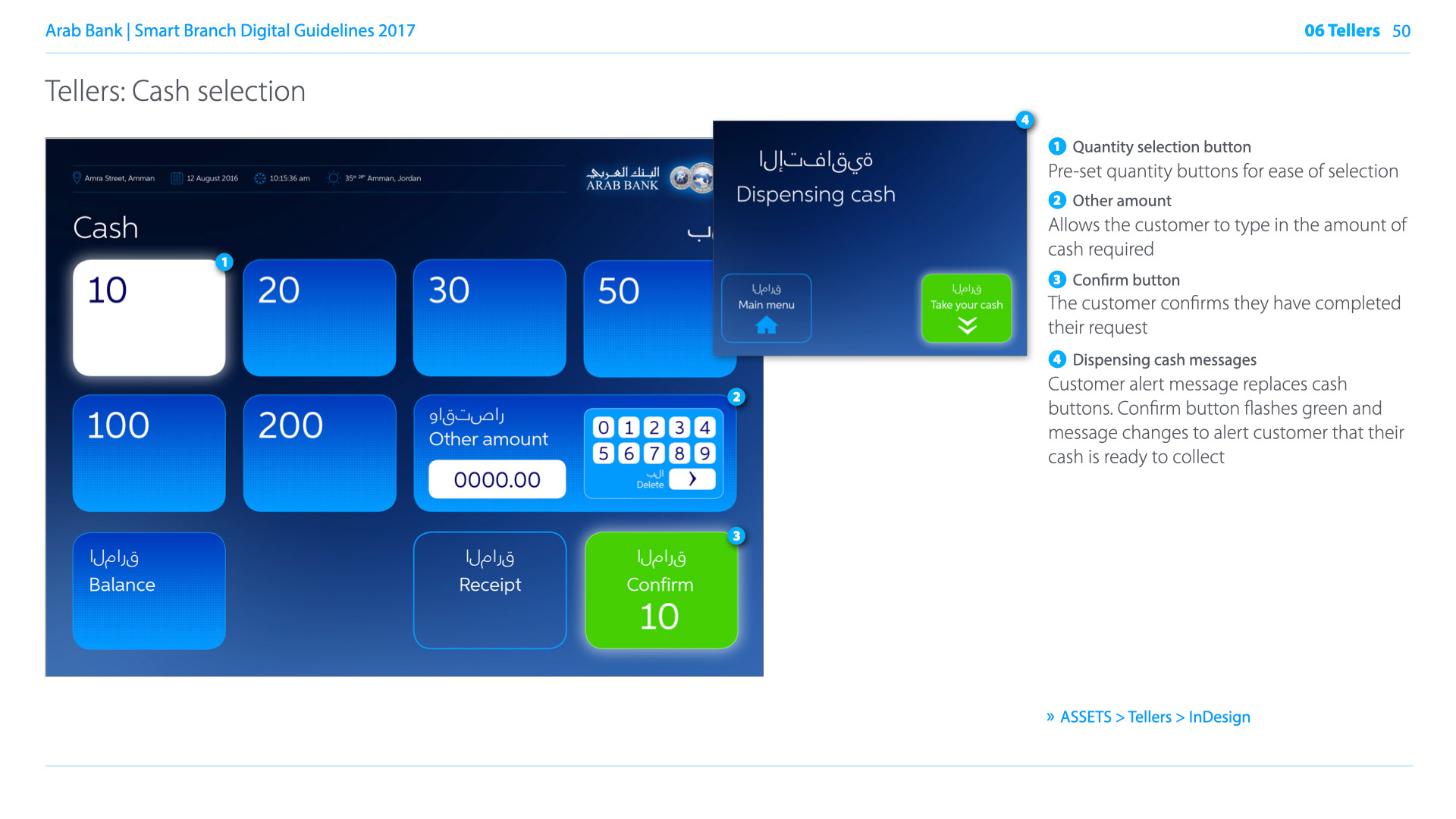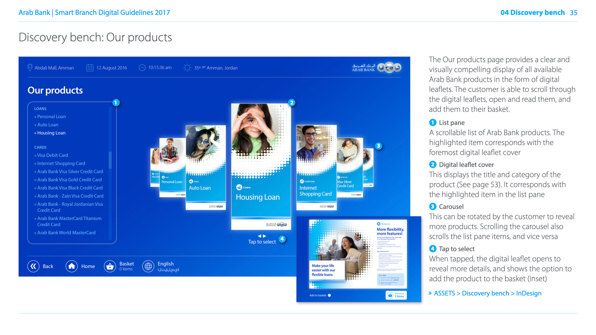 A brand refresh for Arab Bank's digital branch concept in Jordan, designed at Allen International. As lead designer, I created the look and feel for the innovative mirror screen surfaces – featuring controlled, contemporary infographic animations – that provided a stunning centrepiece for showcase branches. The brand refresh included the introduction of an expanded brand language suitable for a consistent user interface across devices and ATMs, branch signage, and design guidelines created in Keynote.