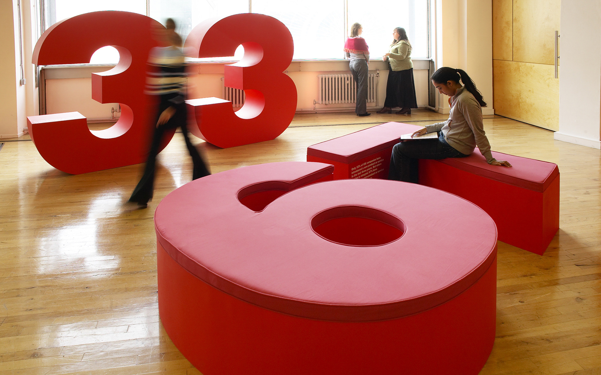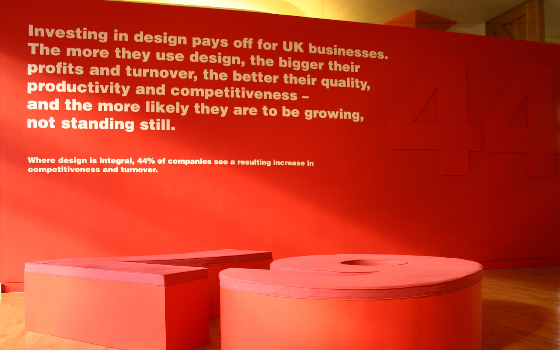 Design Council required a concept for their London-based staff that visualised metrics for the effectiveness of design in business. Rather than suggesting a wall-mounted infographic or a printed brochure, we devised a series of environmental installations throughout Design Council's offices with which colleagues could interact and engage.