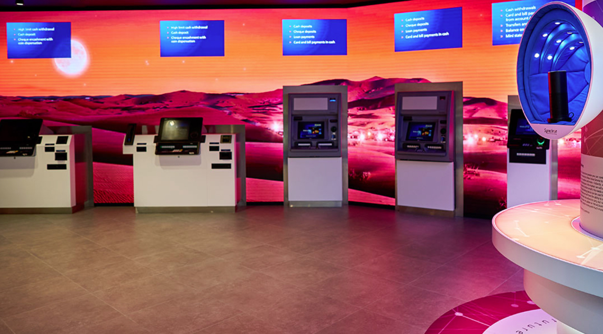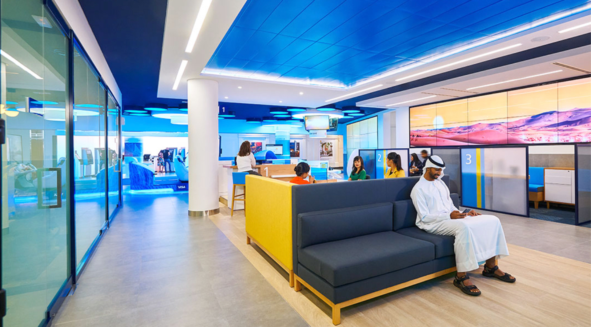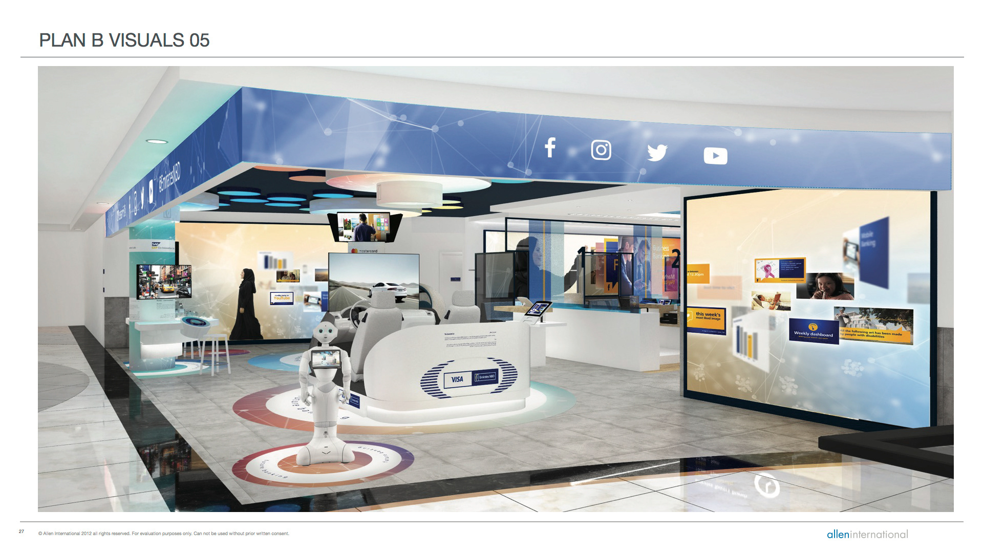 Emirates NBD's vision of the branch of the future centred around a blended approach to banking, combining traditional services with cutting-edge technology and personalised experiences. I created the visual treatment for the environmental graphics, storyboarding and art directing extensive animations and video sequences. These included bespoke screens displaying an animated cityscape transitioning from day to night, digital exhibits demonstrating innovative banking solutions, and advisory services led by customer service representatives and financial advisors.