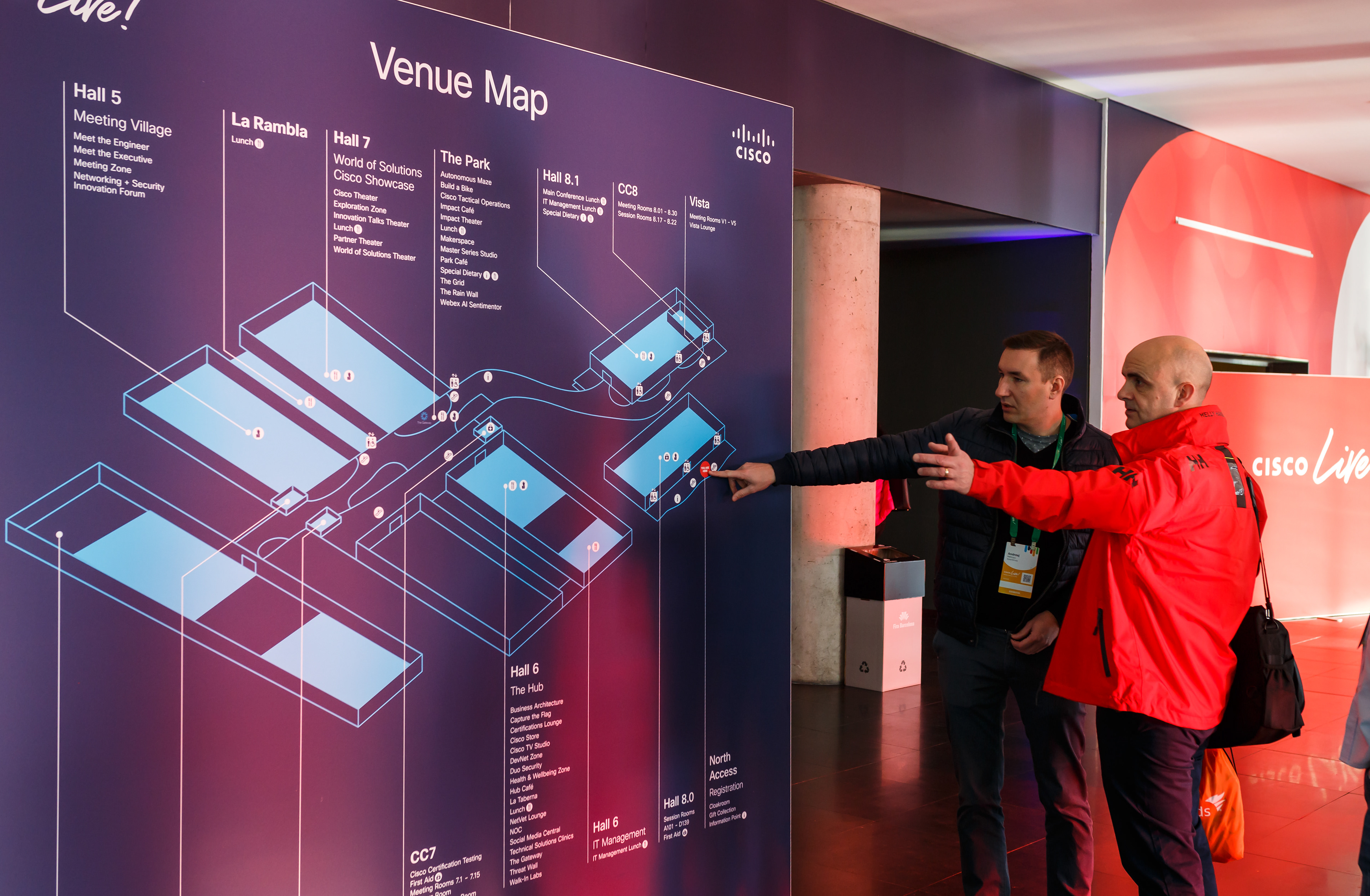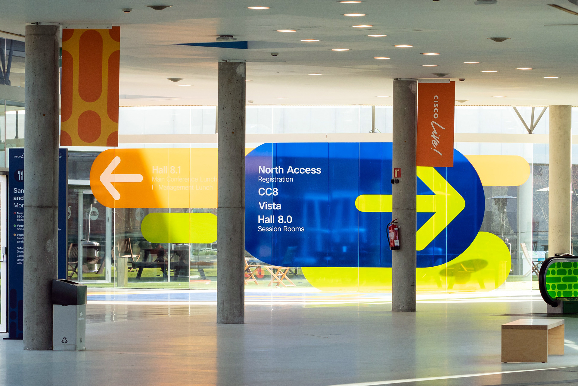 Cisco Live is a large annual customer and partner conference organised by the leading networking and technology company Cisco. Working with events agency George P. Johnson in 2019 and 2020, I was 2D design lead for Makerspace, The Park, the restaurant, and various other spaces and stands, pushing Cisco's brand guidelines to create a vibrant and dynamic visual environment. I worked closely with creative directors, 3D designers, production teams, suppliers, installers and clients to keep the gears moving, maintaining creative quality, and overseeing installation to rigorous standards.